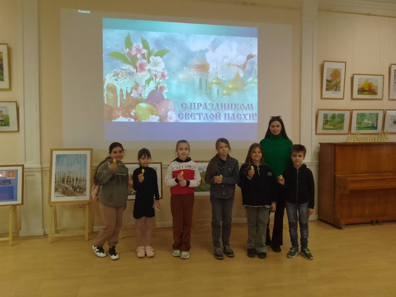 Гости узнали об истории праздника, народных поверьях и пасхальных традициях. Они посмотрели видео о знаменитых на весь мир пасхальных ювелирных изделиях Карла Фаберже и послушали отрывок из произведения Ивана Сергеевича Шмелёва «Лето Господне».