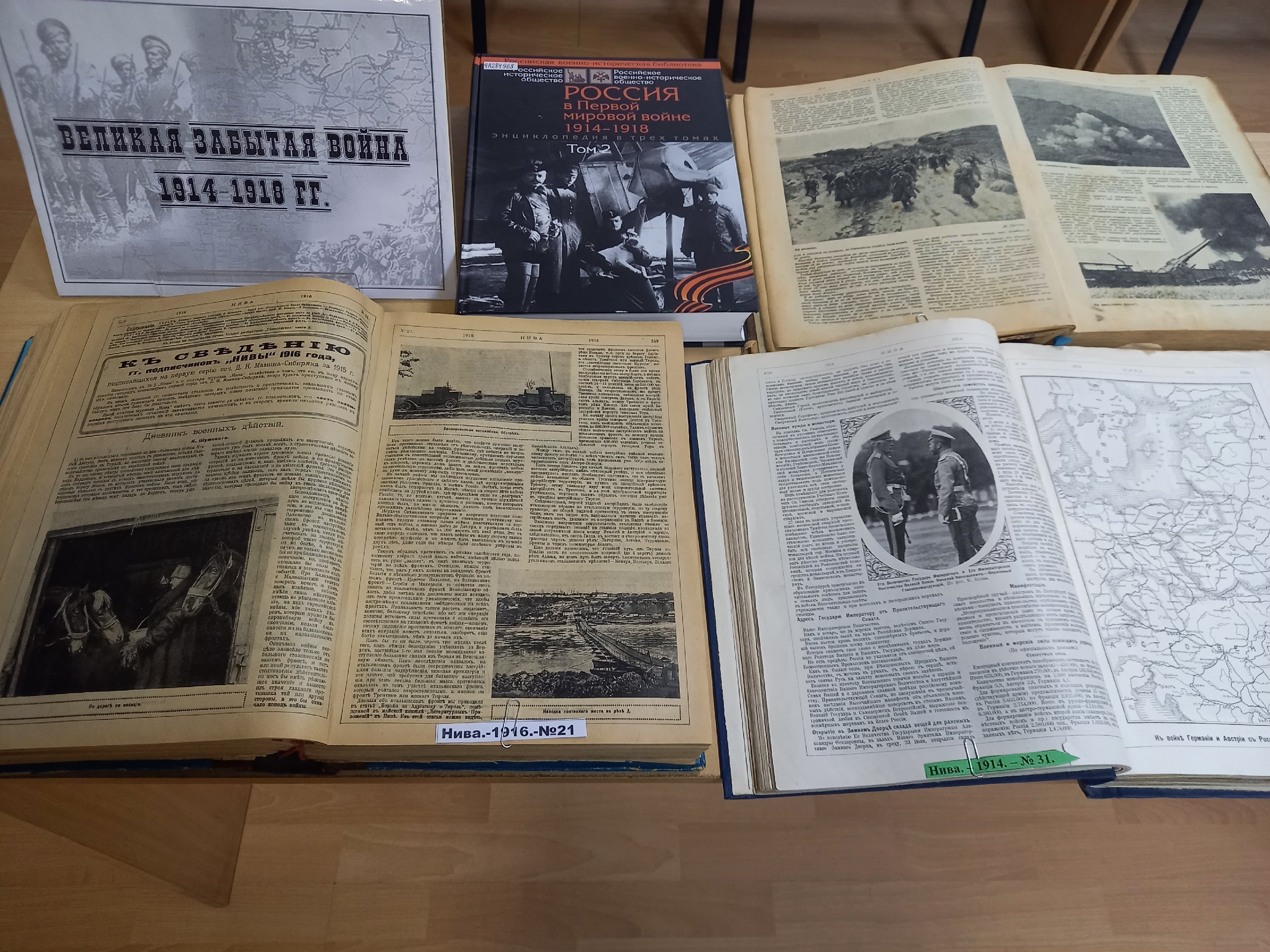Работу мероприятия сопровождала выставка печатных изданий «Великая забытая война», подготовленная сотрудниками отдела основного книгохранения. Экспозицию представляли издания редкого фонда библиотеки 1914 – 1917 годов.