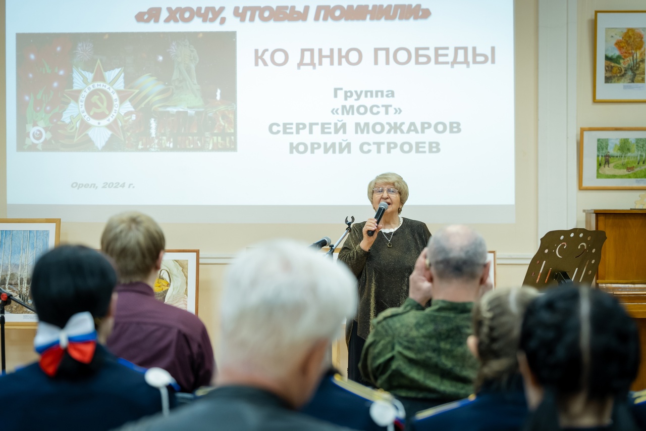 В праздничном концерте приняли участие орловские поэты – Игорь Гольцов и Вера Орлова. Они читали свои стихи, В. Орлова спела любимую всеми «Темную ночь».
