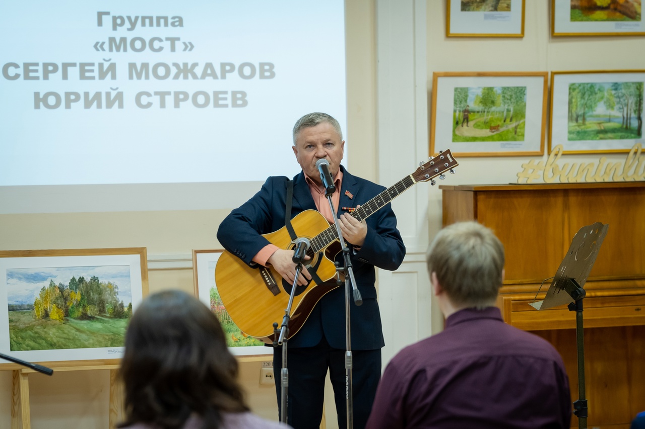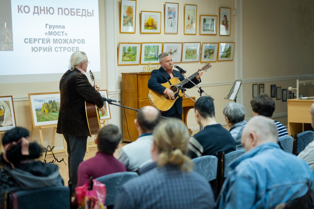 В исполнении С. Можарова и Ю. Строева на протяжении всего вечера звучали песни военных лет, которые в самое тяжелое время поддерживали солдат на поле боя, авторские сочинения, песни на слова орловских поэтов, а также композиции на стихи В. Высоцкого.