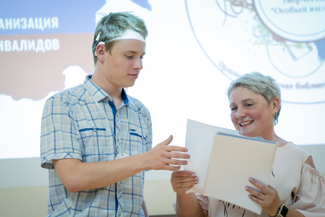 На праздничном мероприятии поздравляли и награждали всех участников выставки художественного творчества «Особенный взгляд». За удачи и победы им вручали благодарственные письма, награждали дипломами и ценными подарками, а еще общались, пели, танцевали вместе с клоунессой Акварелька и детским коллективом «Серпантин». В завершение праздника все победители были приглашены для общего фото и памятного флешмоба.