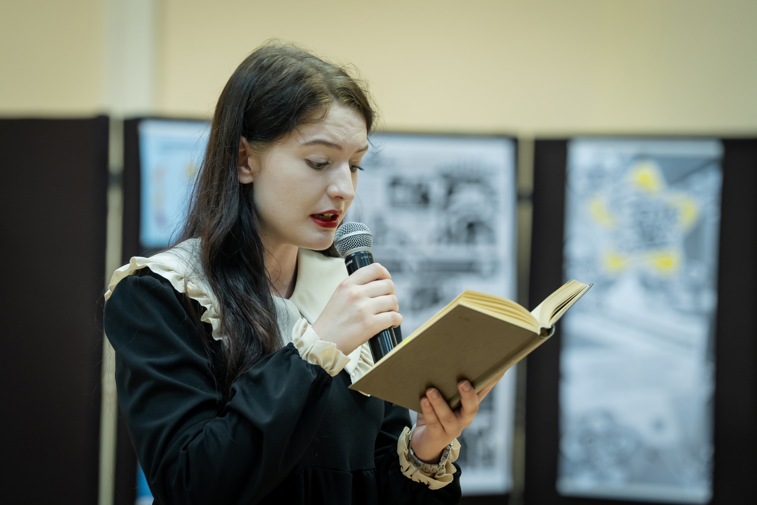 В 14:00 на суд зрителей представили выставку литературных постеров, ставшую результатом культурного челленджа «Графические истории». Центр чтения стал партнером проекта, инициированного лабораторией «дваслова».
