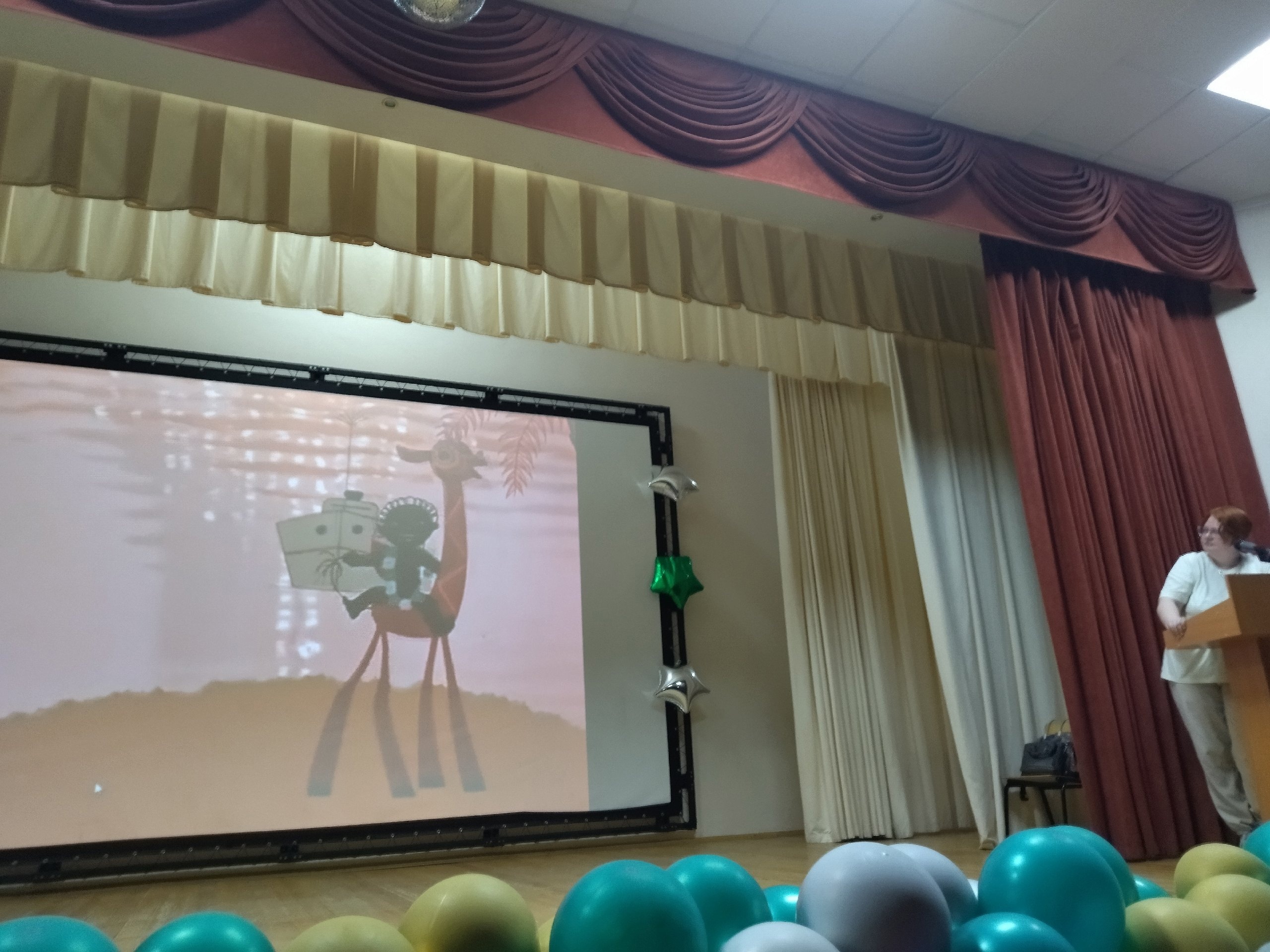 Дети из школы №10 смотрят отрывок из мультфильма женщины- мультипликатора