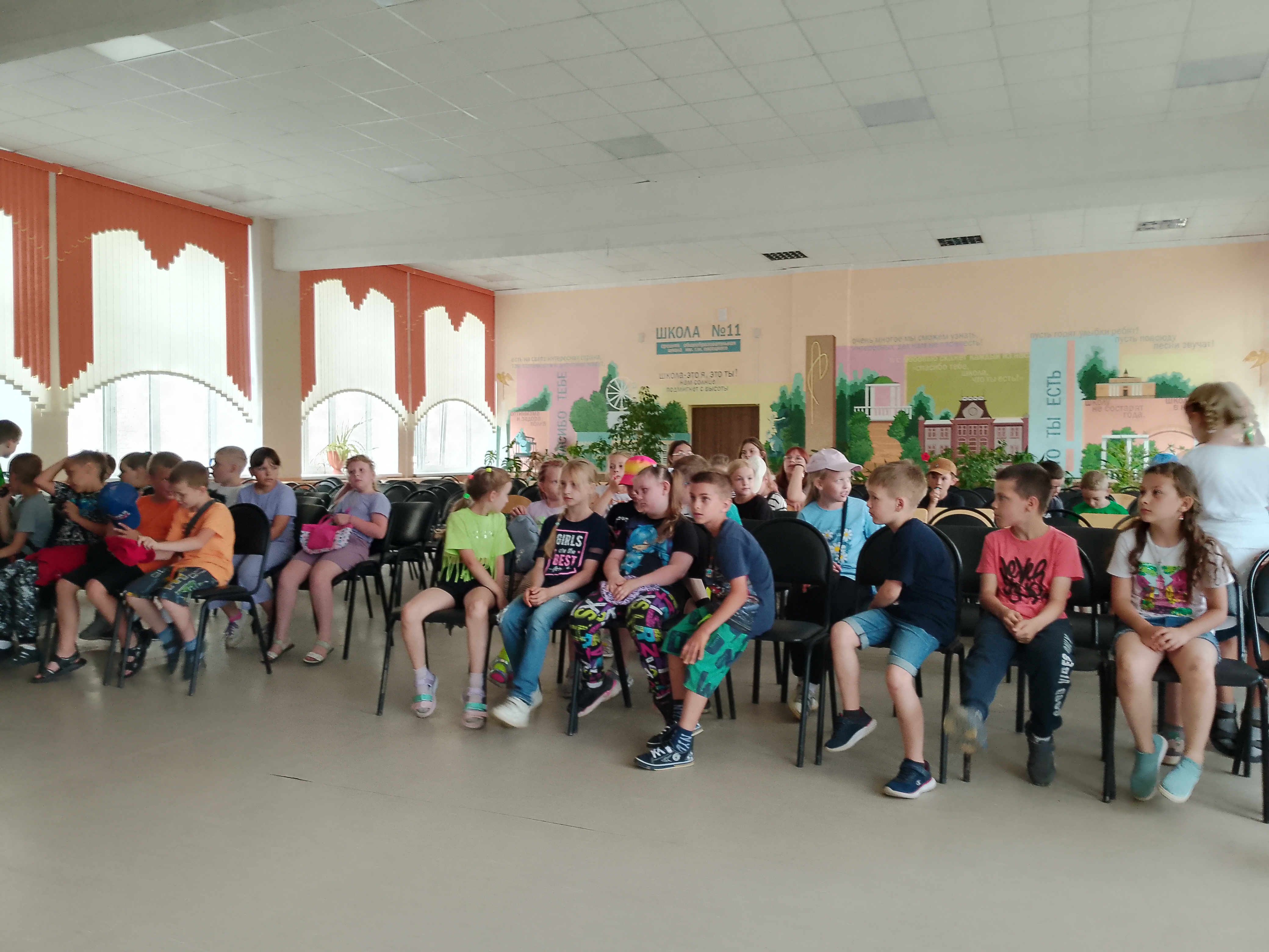 Дети из 11 школы смотрят отрывок из фильма о наших воинах
