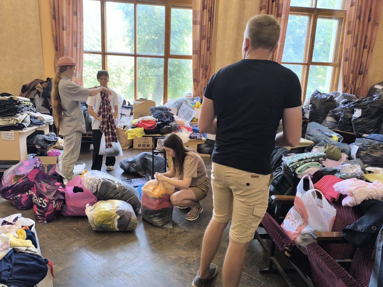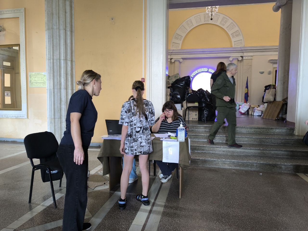 Сотрудники помогали сортировать предметы одежды и личной гигиены, разгружать продукты питания и регистрировали приходящих граждан.