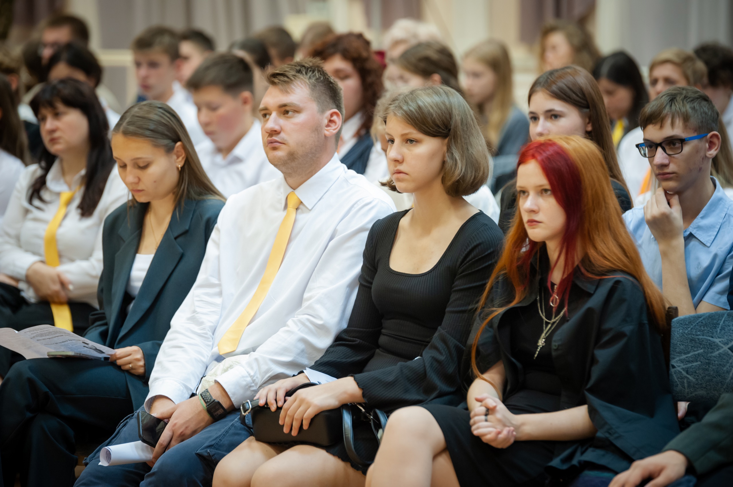 Учащиеся со всей орловской области слушают выступающего на конференции молодежи «Шумел не только Брянский лес!»