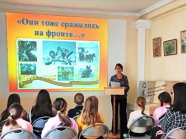 Школьники узнали, что на основе рассказов ветеранов и рассекреченных ранее недоступных военных документов, существуют письменные свидетельства, которые приоткрывают завесу над одним из удивительных фактов Великой Отечественной войны: в тяжелые годы рядом с солдатами на фронте воевали и те, кого мы называем братьями нашими меньшими: звери и птицы.