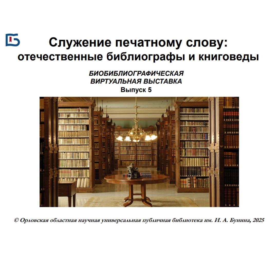 Орловская областная библиотека им. И. А. Бунина продолжает цикл биобиблиографических виртуальных выставок, посвященных известным российским библиографам. Основная цель этого проекта – рассказать о выдающихся деятелях книжного и библиотечного дела, известных российских библиографах, познакомить с основными трудами ученых, а также с их жизнью и деятельностью.