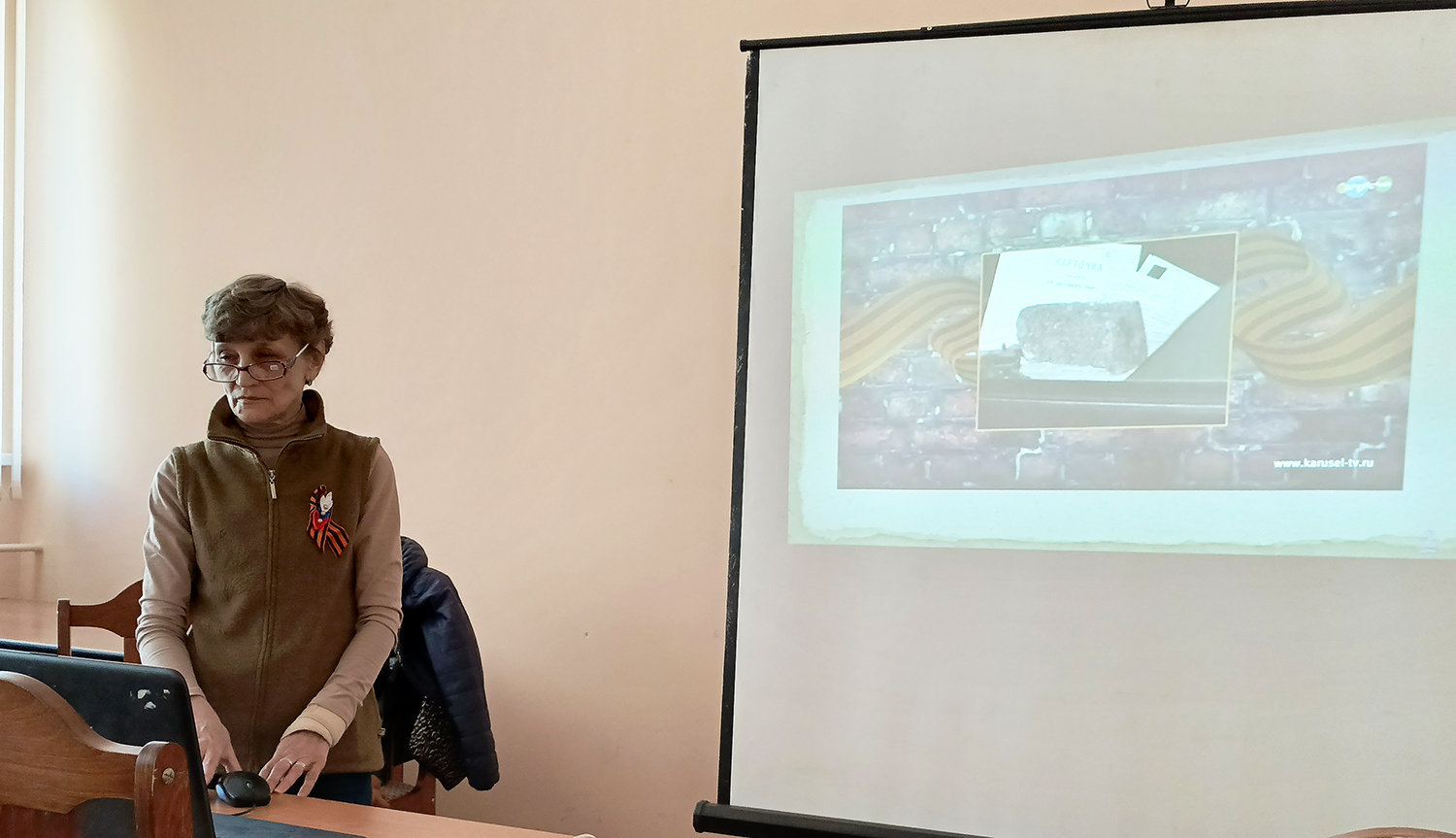 Сотрудником библиотеки была подготовлена мультимедийная презентация, рассказывающая об истории Великой Отечественной войны, о знаменитых сражениях и битвах, о мужестве и героизме солдат во время Великой отечественной войны, а также об истории праздника. Студенты колледжа отвечали на вопросы по теме мероприятия, познакомились с художественными произведениями русских писателей о войне.