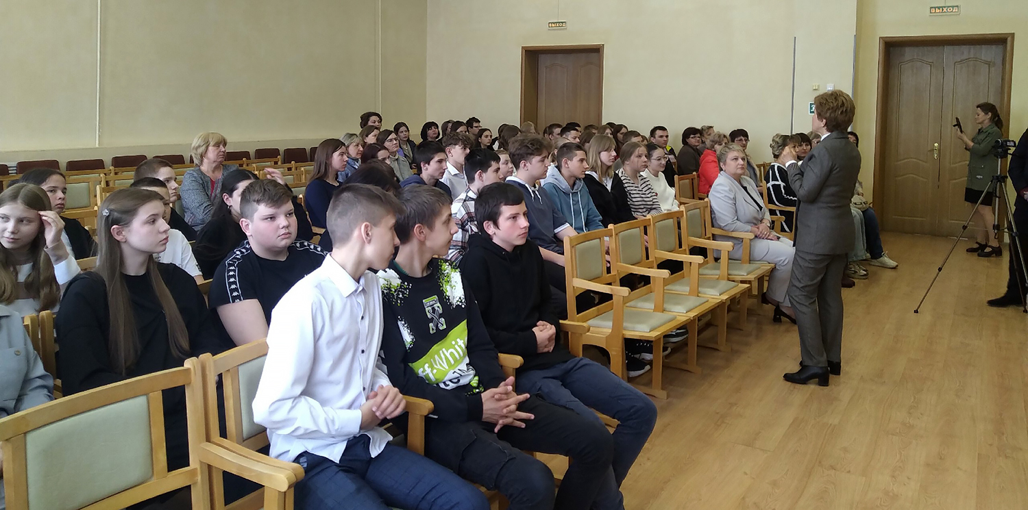 Открыла встречу с учащимися председатель Орловского областного совета ветеранов (пенсионеров) войны, труда, Вооруженных Сил и правоохранительных органов Галина Анатольевна Казначеева. Она рассказала ребятам о том, как общественная организация собирала исторические сведения о восстановлении Орловщины, записывая интервью с детьми войны и их родственниками в рамках проекта «Победу труженики тыла ковали праведным трудом: трудовой подвиг Орловщины» (2023).