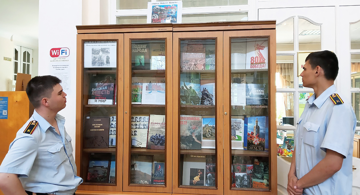 1 июня 2025 года работники универсального читального зала организовали для студентов Орловского юридического института МВД России имени В. В. Лукьянова (ОрЮИ МВД России) презентацию выставки «Войны священные страницы. Монументы мужества и славы».