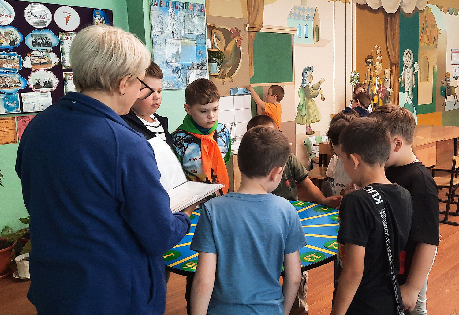 На библиографическую игру «Крутится волчок» пришли школьники из 3-х групп школьного лагеря разных возрастов: от ребят постарше до совсем маленьких.