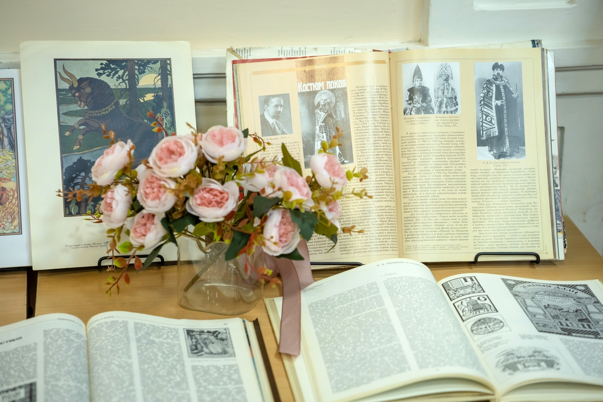 Научно-популярные издания, представленные на экспозиции, раскрывали уникальные особенности творчества И. Я. Билибина, помогая лучше понять его вклад в развитие русского искусства. Книги содержали детальные описания художественных приёмов мастера, его необычных и новаторских решений в области работы со светом и цветом.