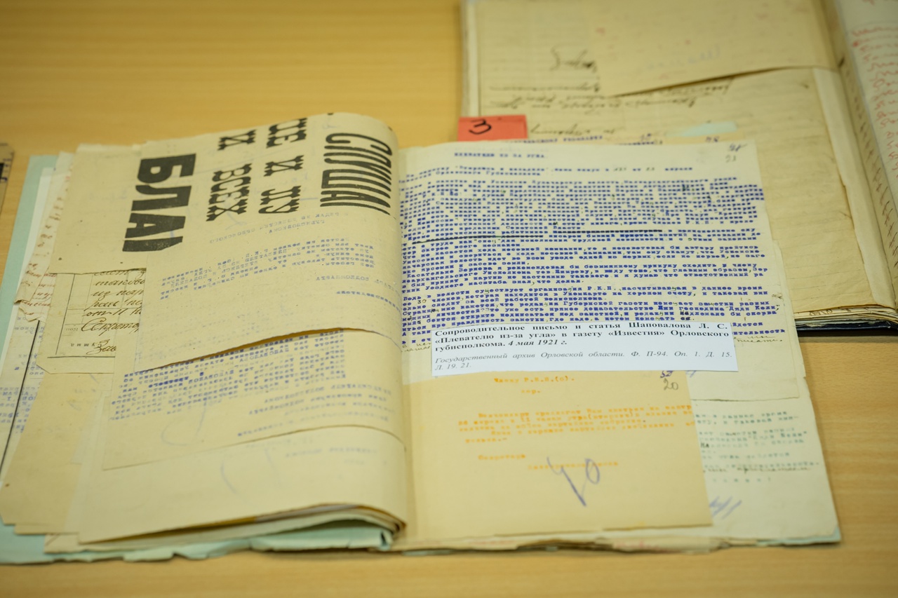 В работе круглого стола принимали участие сотрудники Государственного архива Орловской области. Ими была представлена уникальная выставка документов.
