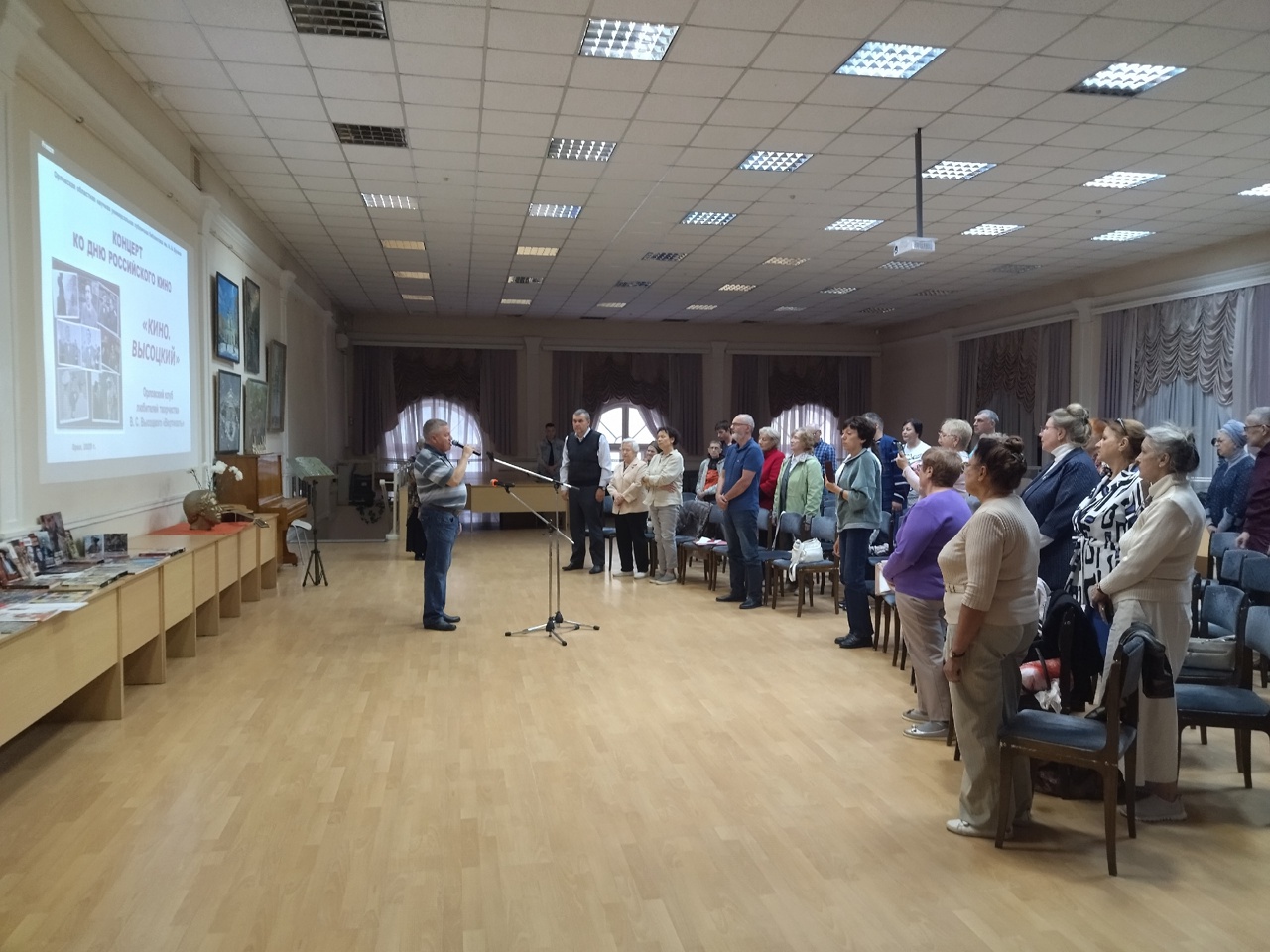 В исполнении участников клуба: Сергея Можарова, Анатолия Иванова и Татьяны Бовиной, поэтесс Веры Орловой и Валерии Павловой, звучали музыкальные композиции из кинолент, песни посвященные Владимиру Семеновичу и авторские сочинения: «Нежность», «Последний бой», «Звезды», «Ты у меня одна», «Летят перелетные птицы, «А река течет», «Марш женских бригад» «Я в весеннем лесу», «Вечный огонь» «Высоким песенным мотивом в кино для поколений» и др.