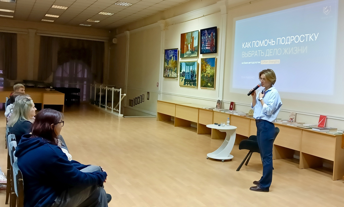 24 сентября 2025 года в универсальном читальном зале библиотеки прошёл мастер-класс «Как помочь подростку выбрать дело жизни». Спикером встречи выступила Елена Рыженко – основатель проекта «Медная гора», эксперт по выявлению талантов и потенциала человека.