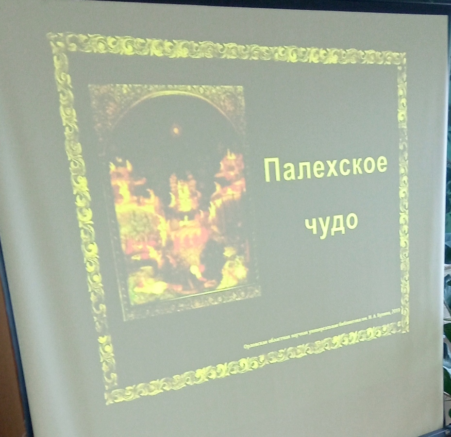 Участникам мероприятия были показаны лучшие издания, оформленные замечательными рисунками мастеров-палешан из фондов Орловской областной библиотеки им. И. А. Бунина.