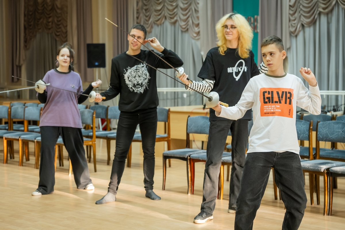 На занятии «Мастерство красноречия» гостей всегда ждут сюрпризы. Красноречие подразумевает не только развитие речевого аппарата, но и языка тела. Пришедшие стали участниками мастер-класса по фехтованию. Наши гости узнали о французской школе фехтования и смогли изучить несколько приёмов защиты и атаки.