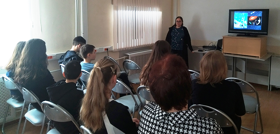 1 апреля 2026 года сотрудниками отдела производственной литературы был проведен интеллектуальный час «Звездными тропами Циолковского» для учащихся гимназии № 19 имени Героя Советского Союза В. М. Меркулова.