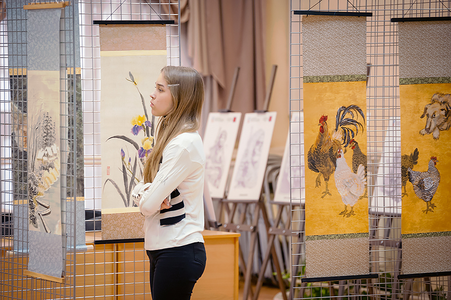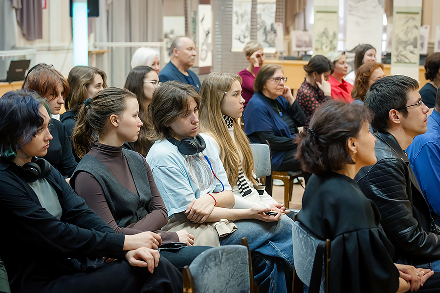 За мнимой простотой стихов Алёны Бабанской – нежная печаль и светлая радость о мироздании и человеке. Столь же тонко и тепло написаны «японские» живописные свитки Алёны. Их выставка сопровождала встречу с поэтом.