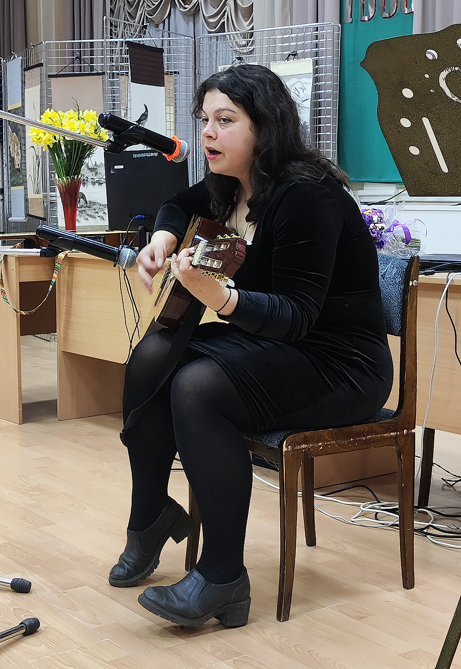 Литературную эстафету подхватили поэтессы Вера Ломакина и Надежда Соловьева, чьи авторские строки добавили вечеру особого изящества и лиризма. Музыкальное же очарование поддержала певица Маргарита Ступина: её авторская композиция «Путь» прозвучала удивительно нежно и проникновенно, став настоящим гимном поиску гармонии и жизненной мудрости.