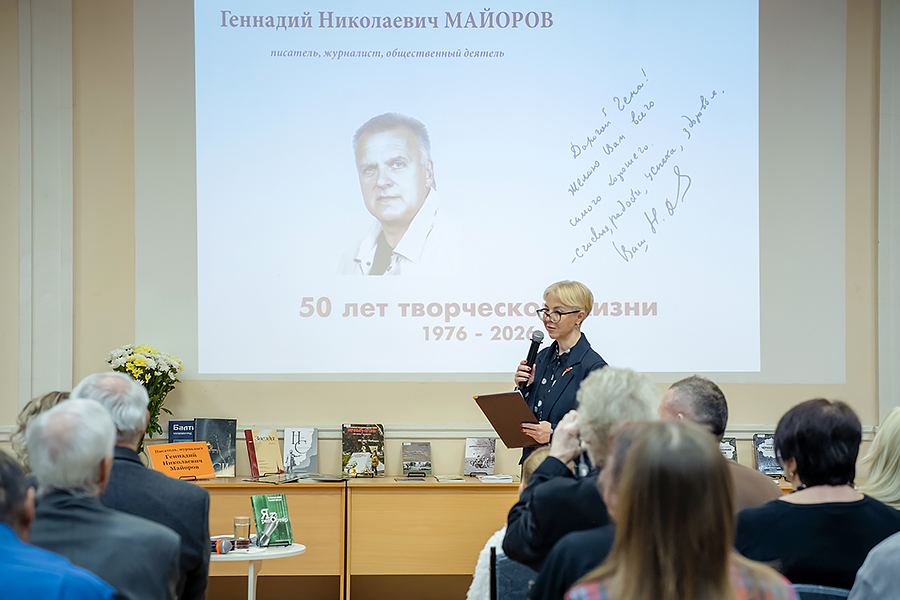 24 апреля 2026 года в библиотеке состоялась встреча с писателем, журналистом, общественным деятелем Геннадием Николаевичем Майоровым, посвящённая 50-летию его творческой деятельности. Лейтмотивом встречи стал рассказ о людях, с которыми довелось работать Геннадию Николаевичу, начиная с 1976 года в газете «Орловский комсомолец». Но предварила этот рассказ семейная фотохроника: детство, родные и близкие, учёба.