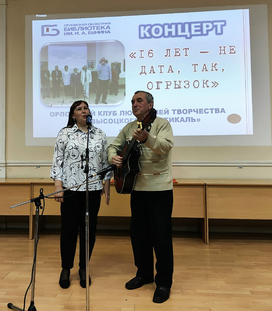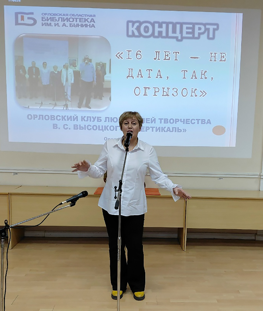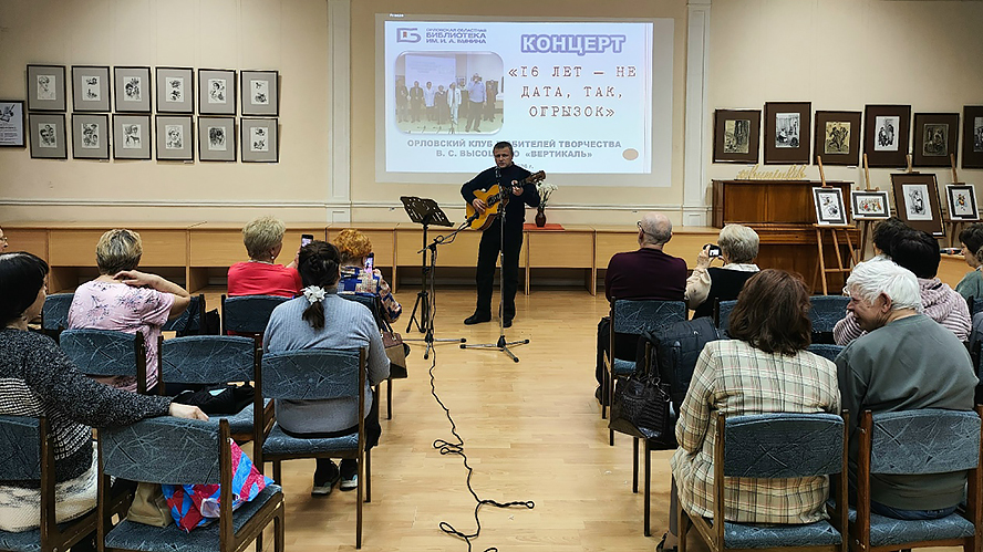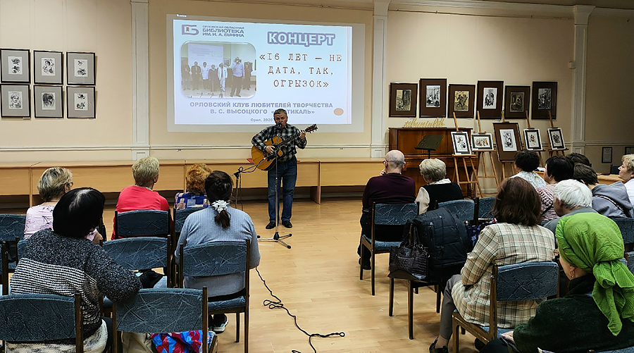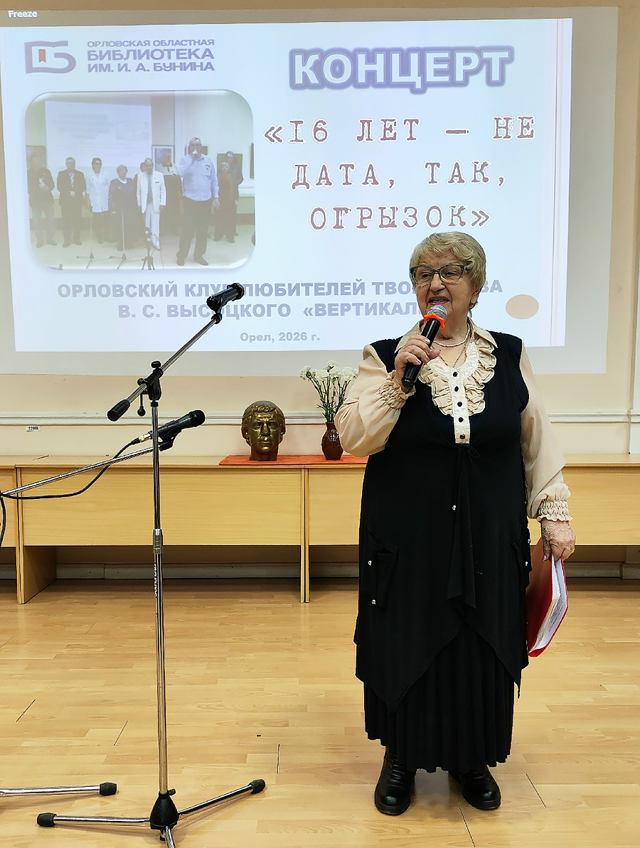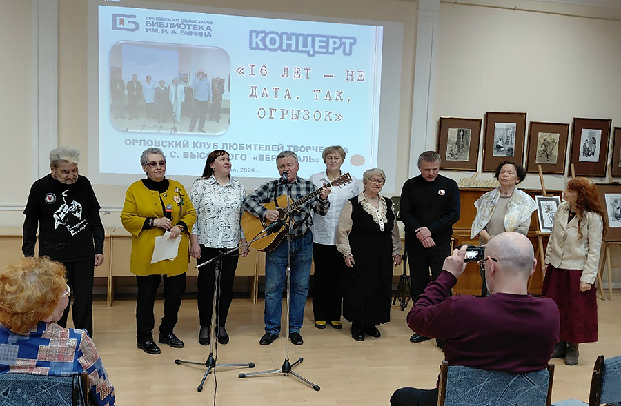 26 апреля 2026 года в Орловской областной библиотеке имени И. А. Бунина звучало не просто слово, звучала душа. Повод был особенный: концерт «16 лет – не дата, так, огрызок…». Так участники клуба обозначили свою годовщину – 16 лет преданности поэту, артисту, кумиру, которая в очередной раз собрала в стенах библиотеки настоящих единомышленников отдать дань бесконечной любви Владимиру Семеновичу.