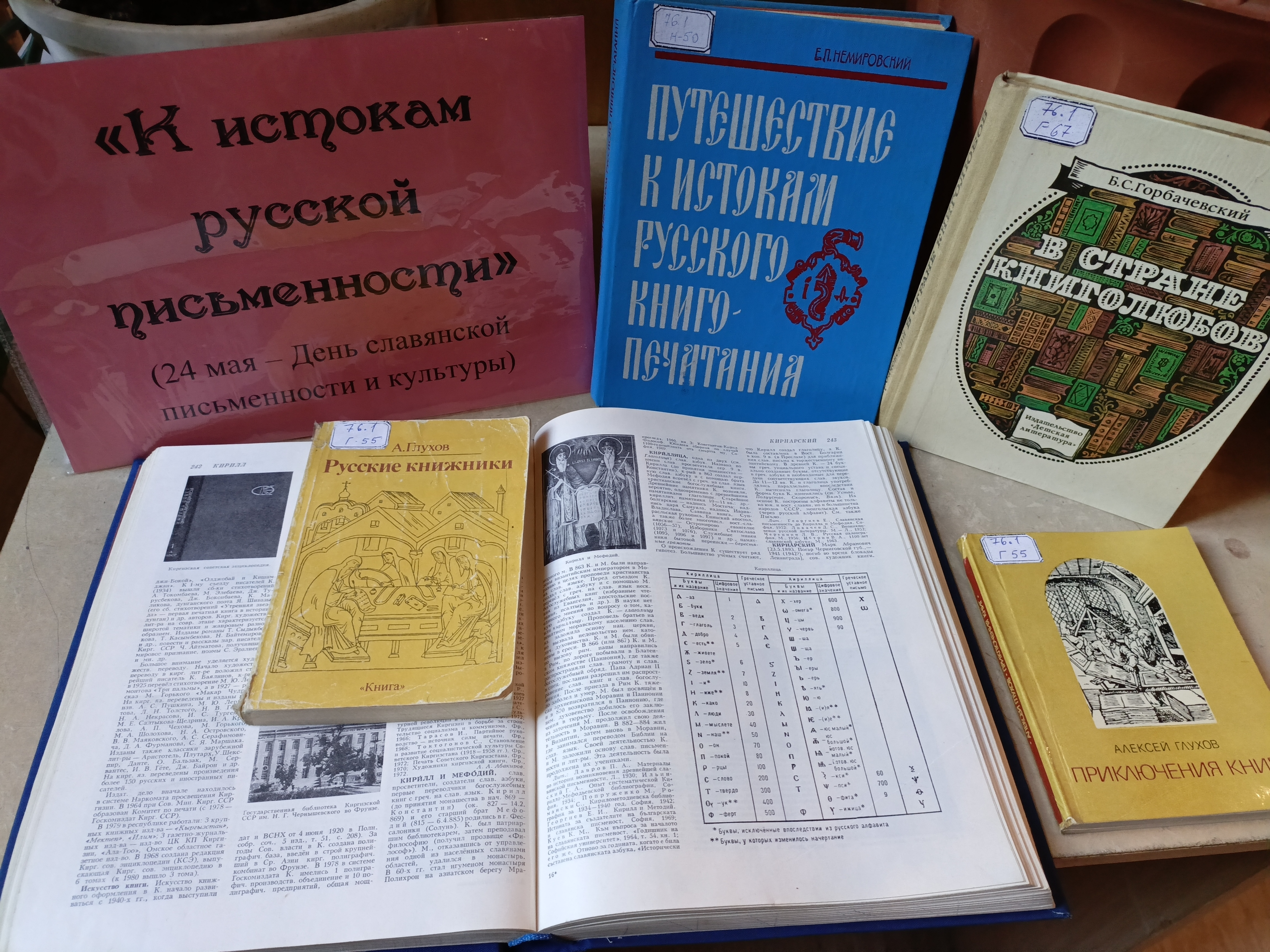 С 23 мая по 1 июня 2024 года в отделе абонемента образовательных услуг Орловской областной библиотеки им. И. А. Бунина работает выставка «К истокам русской письменности», посвящённая Дню славянской письменности и культуры (24 мая).
