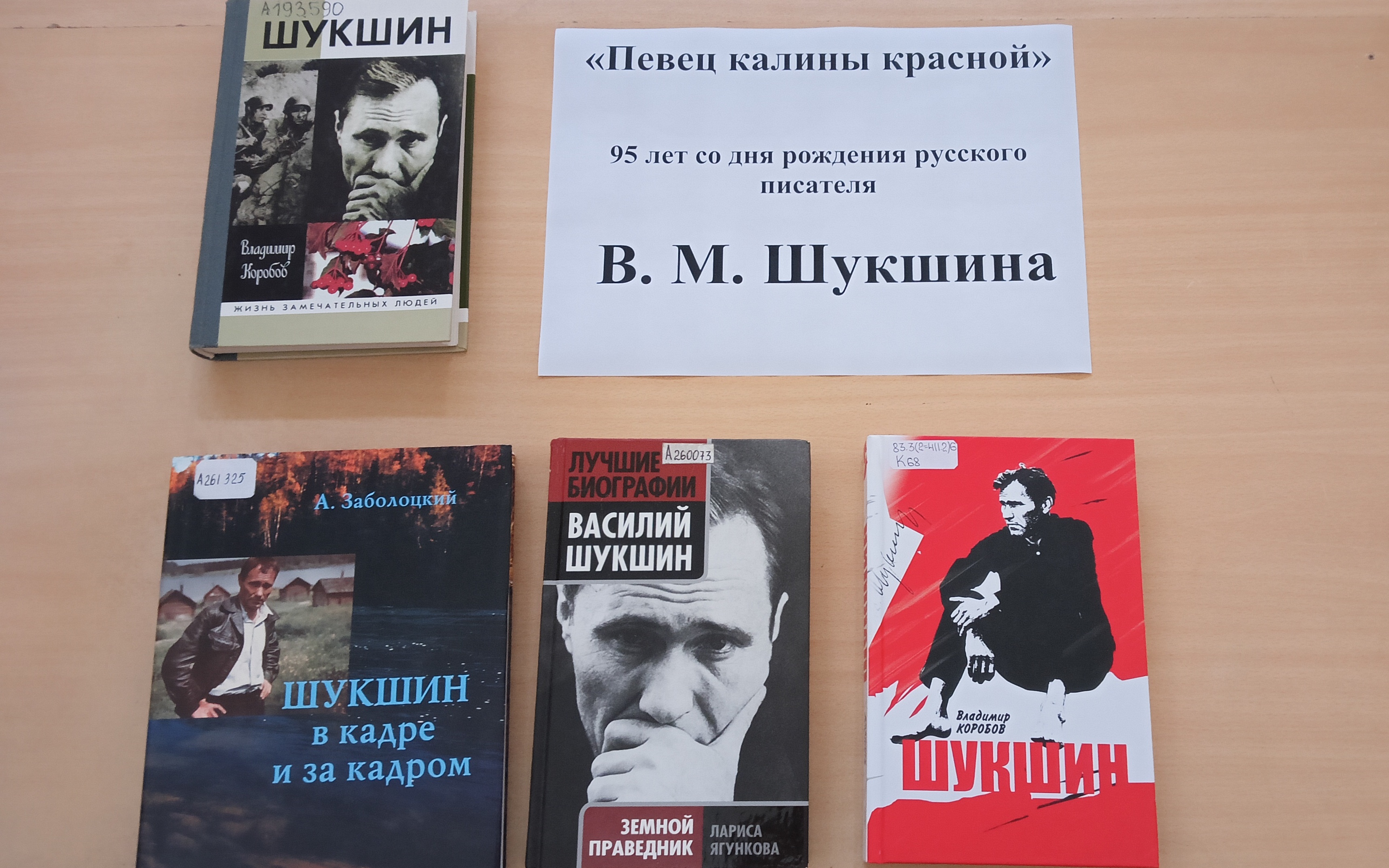 С 1 по 31 июля 2024 года в читальном зале Орловской областной библиотеки им. И. А. Бунина работает выставка «Певец калины красной», приуроченная к 95-летию со дня рождения В. М. Шукшина.