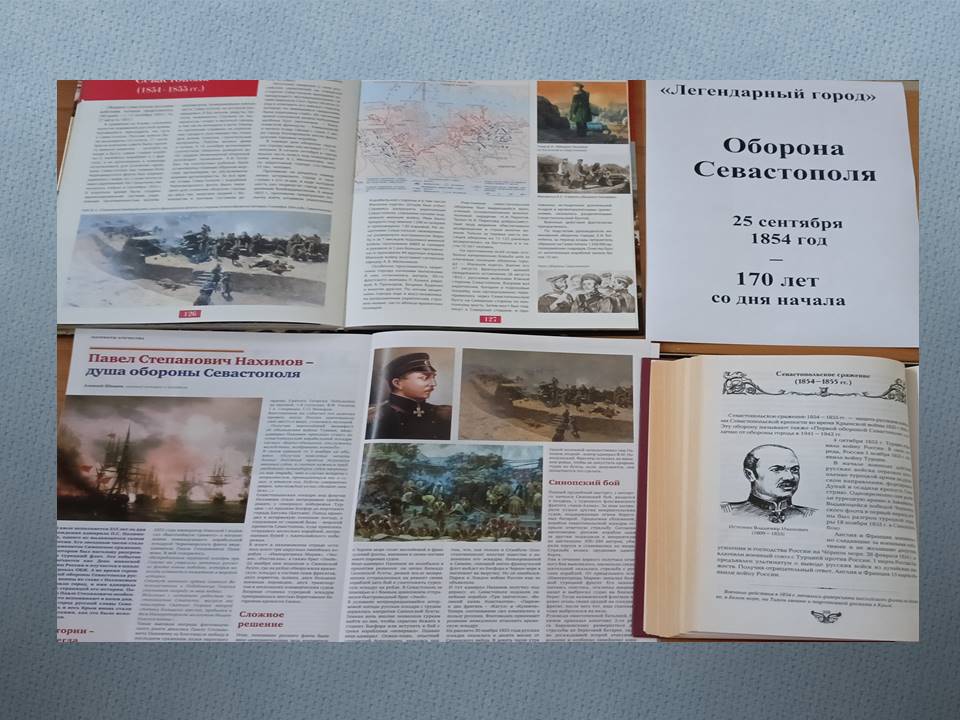 С 2 по 30 сентября 2024 года в читальном зале работает выставка «Легендарный город», приуроченная к 170-летию со дня Первой обороны Севастополя.