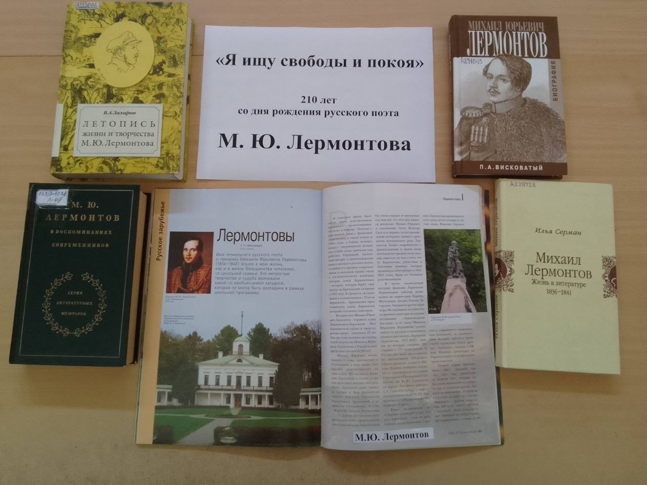 С 1 по 31 октября 2024 года в читальном зале Орловской областной библиотеки имени И. А. Бунина организована выставка литературы «Я ищу свободы и покоя», приуроченная к 210-летию М. Ю. Лермонтова.