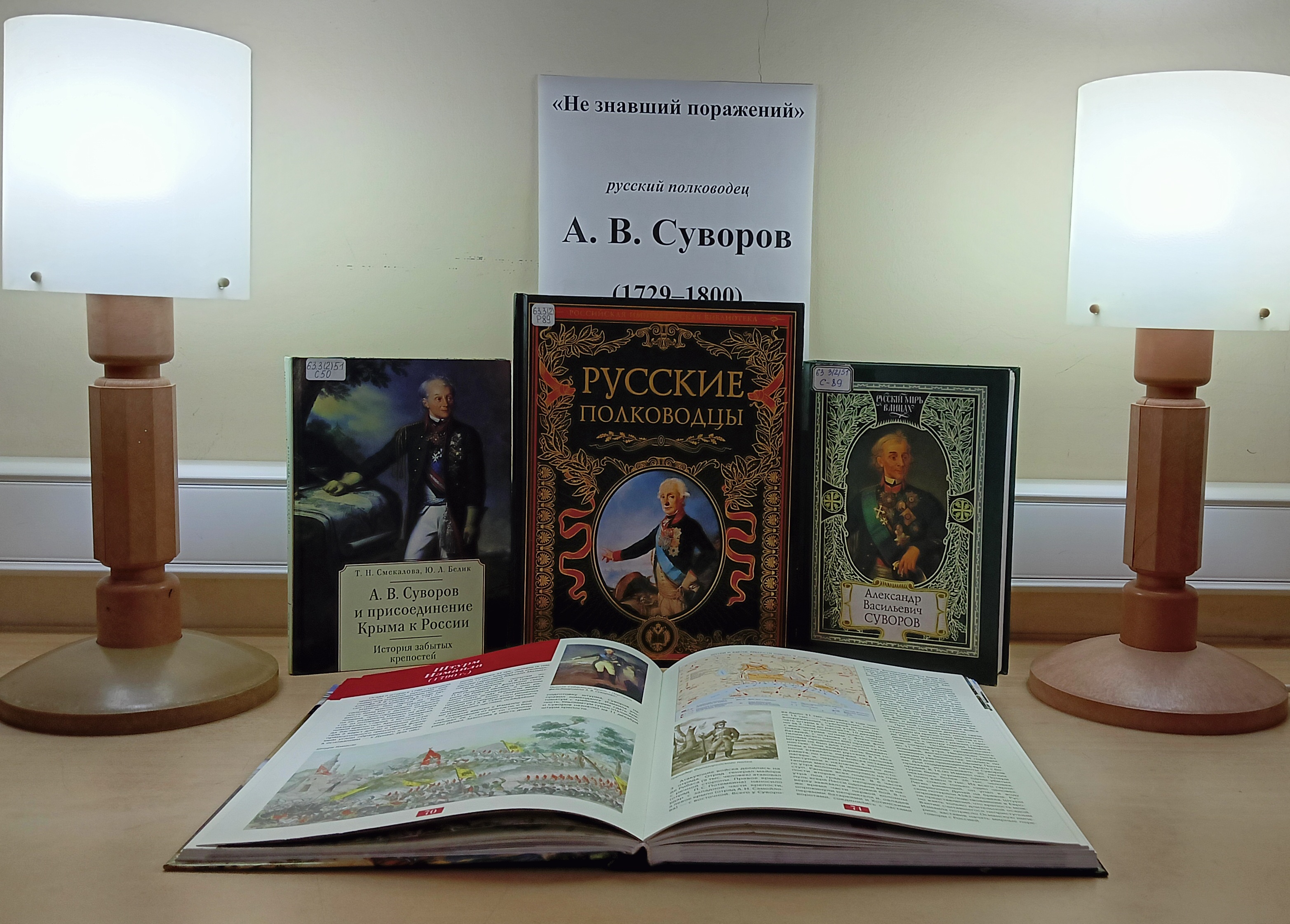 В 2024 году исполняется 295 лет со дня рождения великого русского полководца Александра Васильевича Суворова (1729/1730-1800 гг.). К этой дате в читальном зале Орловской областной библиотеки им. И. А. Бунина организована выставка литературы «Не знавший поражений». Экспозиция работает с 5 по 30 ноября 2024 года.