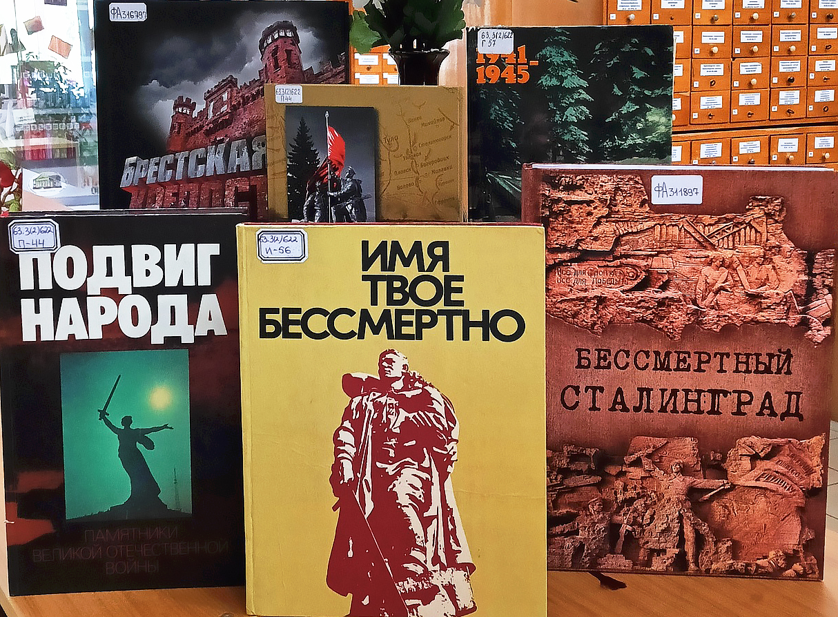 Издания, представленные на выставке, рассказывают о самых известных монументах, посвящённых героизму советского народа.