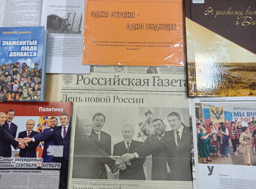 С 25 сентября по 8 октября 2025 года в зале периодики Орловской областной библиотеки им. И. А. Бунина работает выставка «Одна страна – одно будущее», приуроченная к новой памятной дате – Дню воссоединения новых регионов с Российской Федерацией.