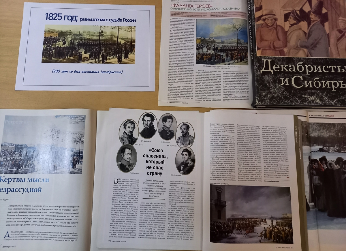 Журналы «Родина», «Смена», «Наука и жизнь», «Преподавание истории в школе» знакомят массового пользователя с предысторией события, разворачивают широкое полотно дня восстания, рисуют портреты главных персонажей, рассказывают об их жизни в сибирской ссылке.