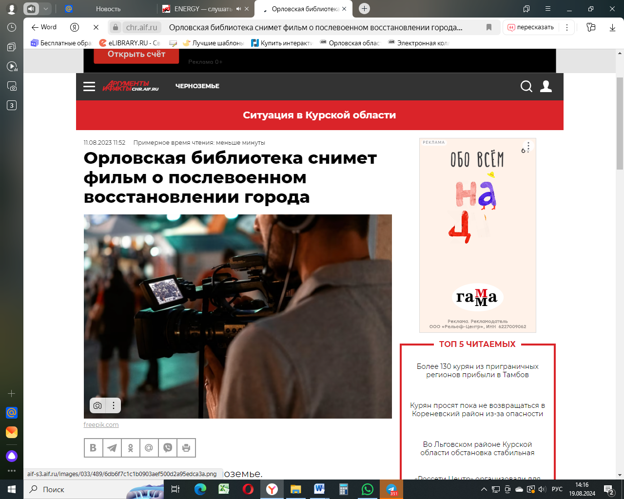 Орловская библиотека снимет фильм о послевоенном восстановлении города. – 11.08.2023. – Текст: электронный //