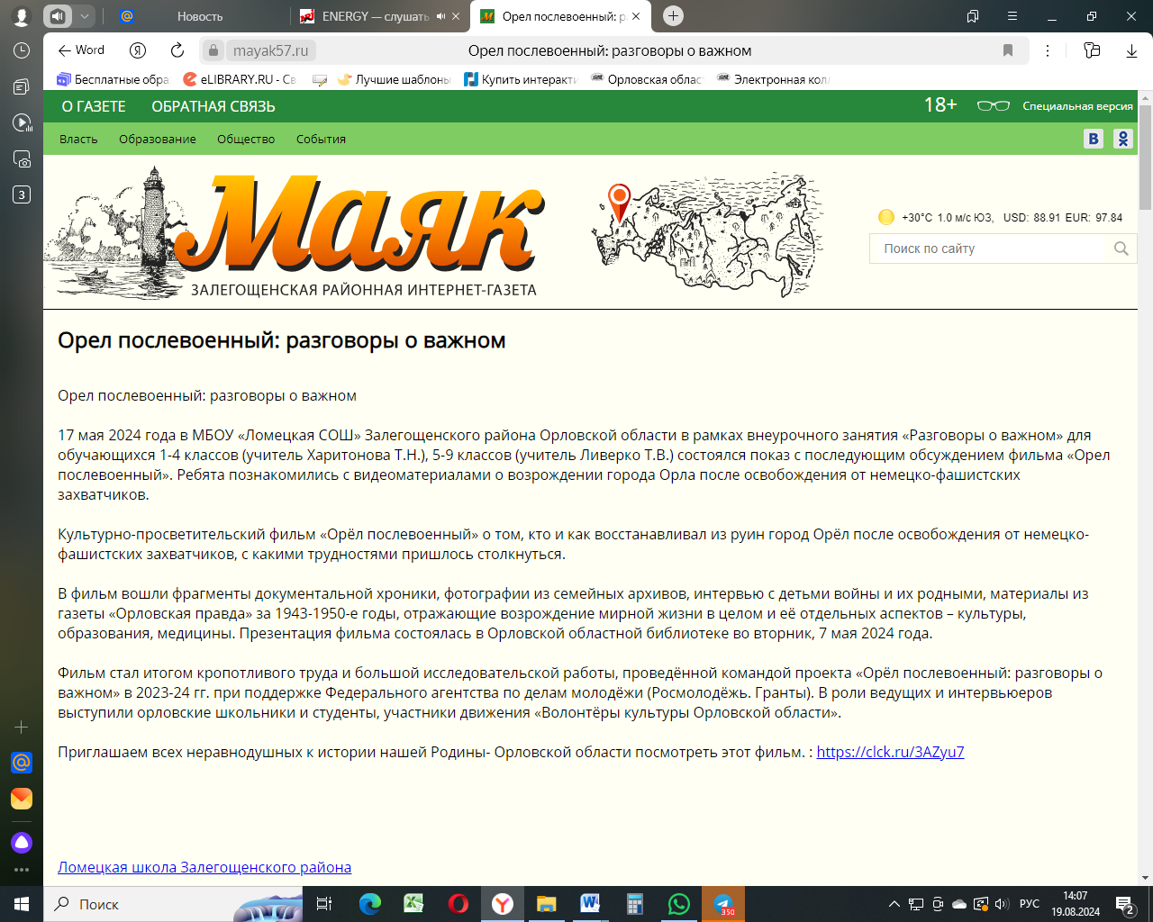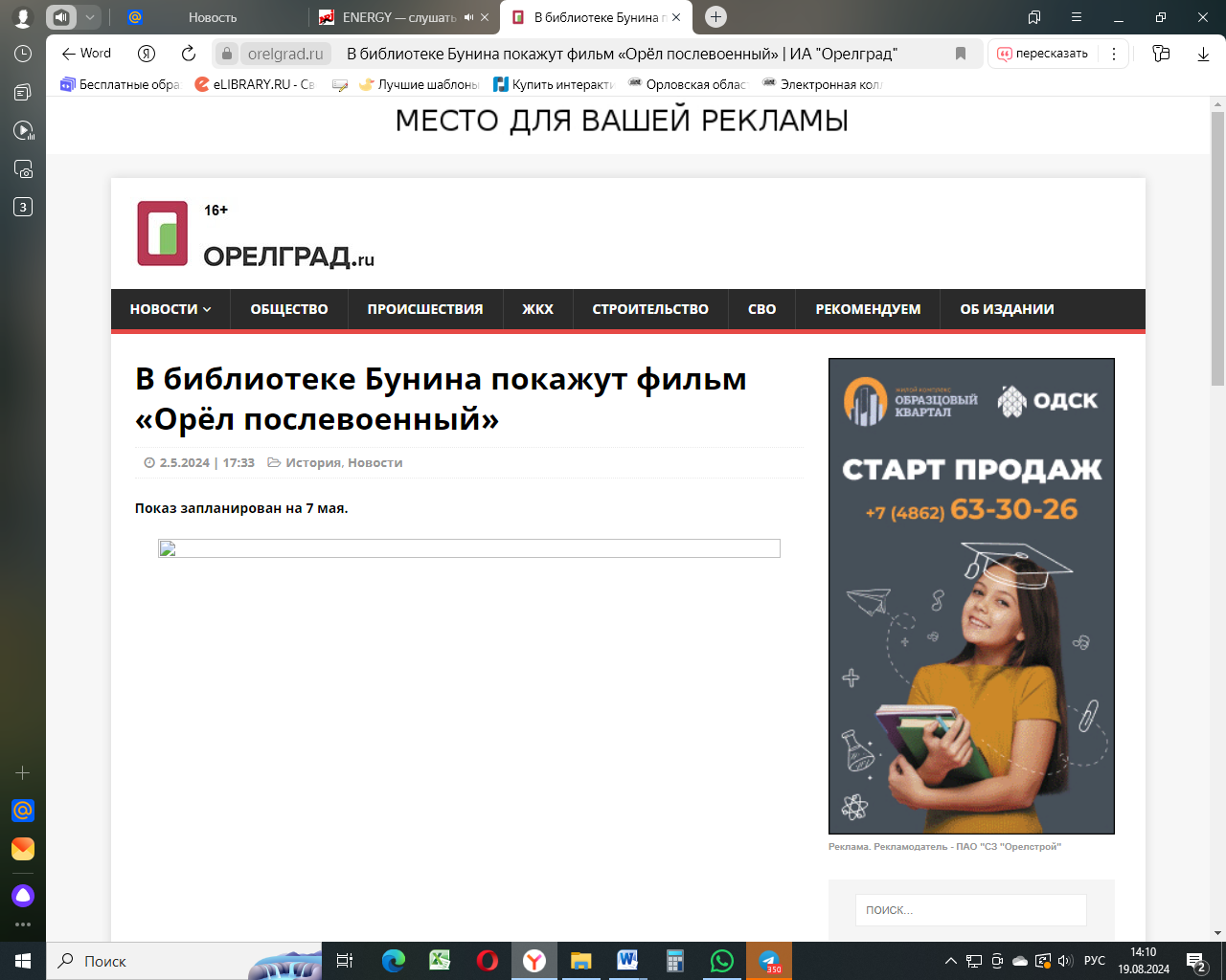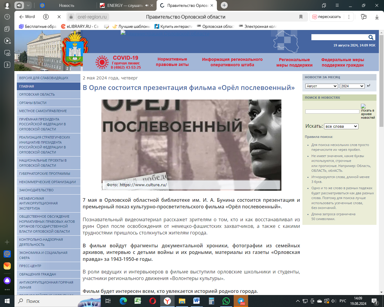 Презентация фильма «Орел послевоенный». – 26.05.2024. Текст: электронный //