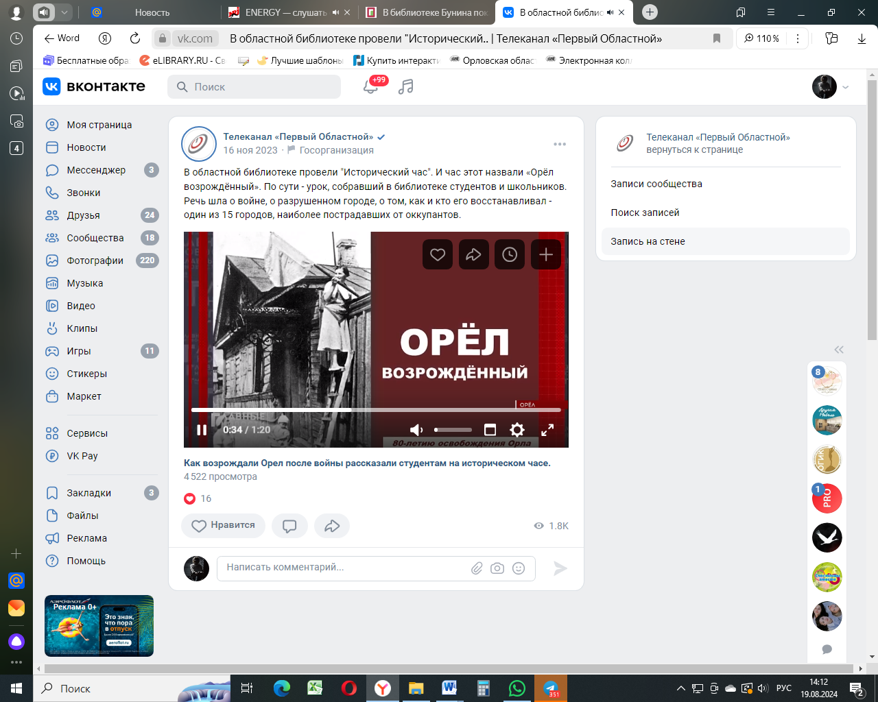Быковский, С. Как возрождали Орел после войны рассказали студентам на историческом часе / Сергей Быковский. – 16.11.2023. Текст: электронный //