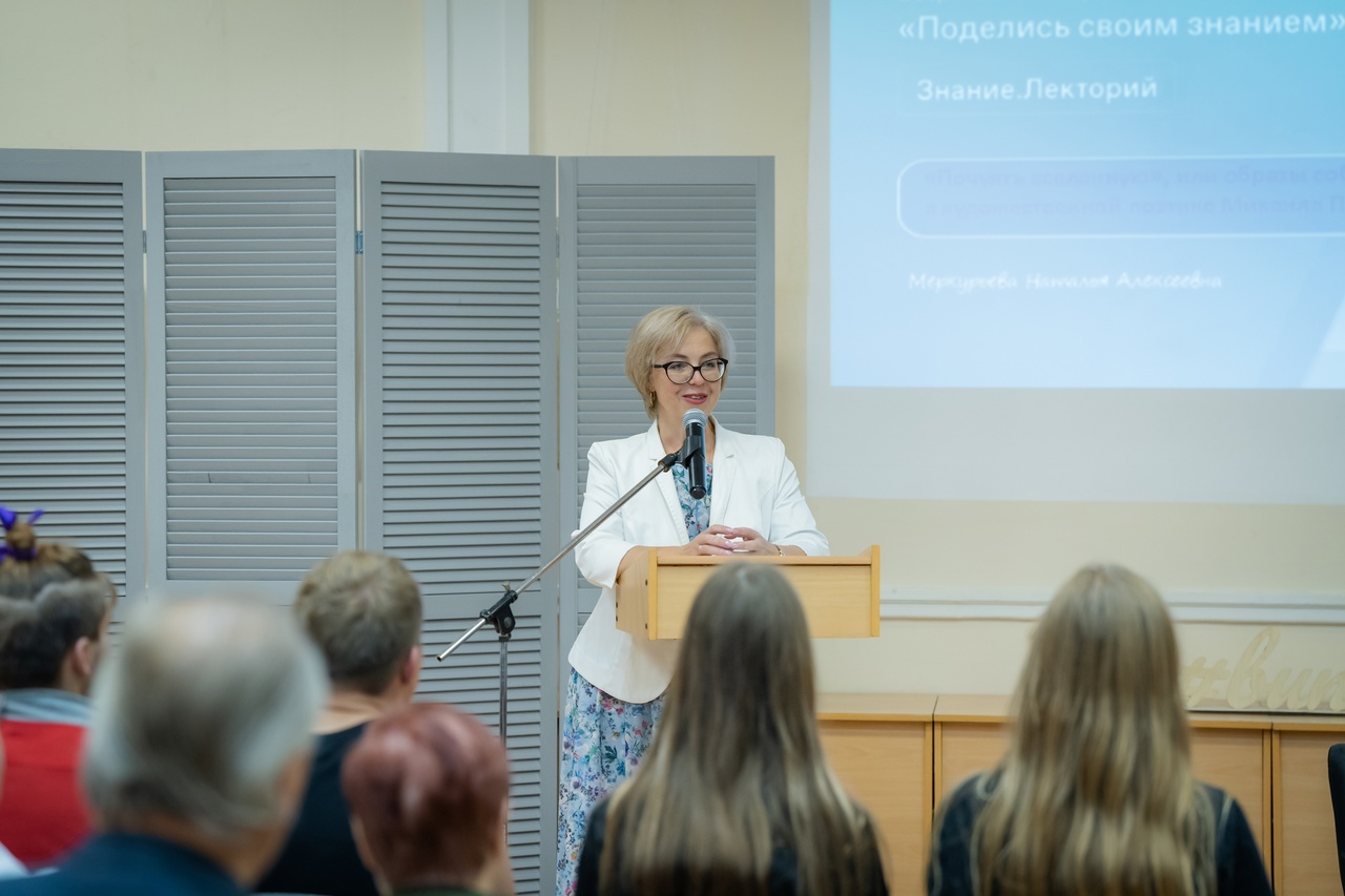 Лектор – Наталья Алексеевна Меркурьева – кандидат филологических наук, доцент, мастер красноречия и сочинитель умных книг по литературе, заведующий Орловского областного центра чтения Орловской областной библиотеки им. И. А. Бунина, учитель русского языка и литературы.