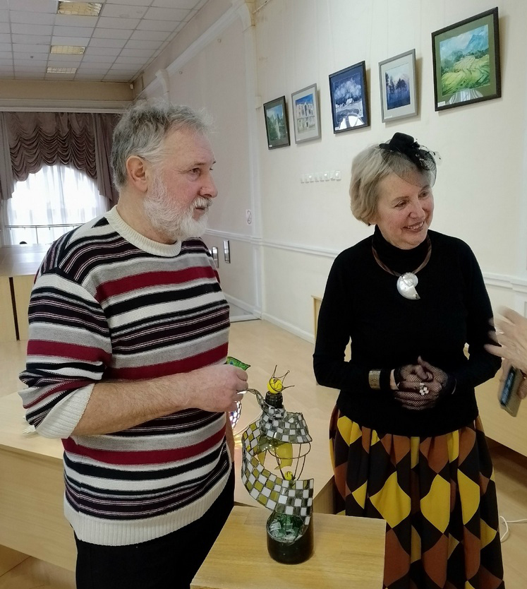 Творческий дуэт Куликовых представил моноспектакль, героями которого стали семь светящихся стеклянных работ из «Шахматной коллекции» Игоря Николаевича – народного мастера по цветному стеклу из Брянской области.