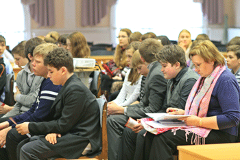 сотрудники библиотеки, педагоги и учащиеся лицея №1.