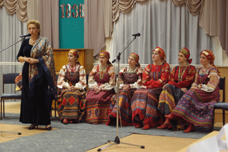 В заключении презентации Татьяна Ивановна поблагодарила всех присутствующих и порадовала слушателей своими новыми стихотворениями. Чтение сопровождалось мультимедийными заставками. Все Желающие могли ознакомиться с выставкой произведений Т. Грибановой «О, среднерусская земля! Мой отчий край», подготовленной сотрудниками отдела абонемент образовательных услуг.