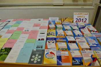 Особое место отводилось выставке «Орловская книга-2012», знакомящей гостей с 931-й книгой, вышедшими в орловских издательствах в прошлом году. Все они учтены в ежегодном областном регистрационном каталоге, подготовленным отделом краеведческих документов библиотеки им. И.А.Бунина и выпущенного издателем Александром Воробьевым. Каталог это часть национального книжного репертуара, отражающая творческий потенциал орловских писателей, ученых, художников, публицистов. В нем учитываются все печатные и электронные издания, поступающие в библиотеку им. И.А. Бунина в соответствии с «Законом об обязательном экземпляре документов Орловской области». Каталог, также включает список авторов и издающих организаций, хронологический перечень праздников «Орловская книга», список лауреатов ежегодного областного конкурса «Орловская книга», реестр периодических изданий, зарегистрированных на территории области.