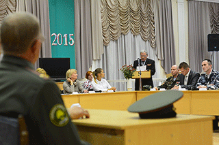председатель Совета ветеранов МЧС А. Д. Безкровный, чье выступление аудитория
