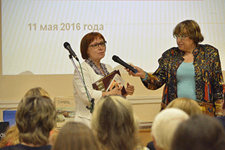 Участники встречи в Бунинке встретились с Мариной Волковой и обсудили такие темы, как продвижение чтения, вовлечение в процесс чтения молодежи, чтение библиотечных специалистов, проблемы современного книгопечатания. Марина Волкова рассказала о проектах по продвижению книги и чтения, реализованных ее издательством: о проекте «ГУЛ» по созданию реального поэтического кластера, «Неделя Шилова», «7 волшебных сундучков» и др. Она заинтересовала собравшихся и проектом «Видеоарт» — по продвижению поэзии, показала оригинальные видеоклипы, снятые в рамках «Видеоарт» по стихотворениям уральских поэтов. Выступление Марины Волковой было принято библиотекарями с большим интересом. В программе встречи состоялся мастер-класс, «Хорошая – плохая книга? Найди книгу для своих читателей», на котором М. В. Волкова обучала библиотечных специалистов основным приемам определения качества полиграфического оформления книги, отметив, что издательская продукция должна соответствовать российским и международным стандартам. Известный издатель познакомилась с библиотекой.