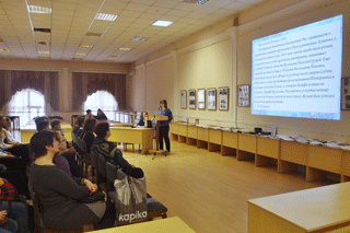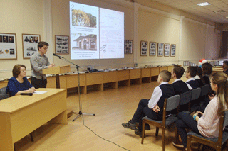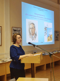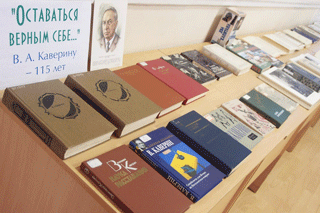 Литературный час начался с интересного рассказа о жизни и творчестве Вениамина Каверина. Вниманию присутствующих была представлена выставка «Оставаться верным себе». В продолжении мероприятия библиотекарь отдела основного книгохранения, Елизавета Мартынова, познакомила собравшихся с прототипами героев романа «Два капитана» Татаринова и Григорьева. Старший научный сотрудник дома-музея А. А. Русанова Светлана Валерьевна Ветрова рассказала о переписке директора музея с Вениамином Кавериным. Интересным было выступление студента 3-го курса техникума технологии и предпринимательства им. В. А. Русанова Александра Скопинского. Собравшиеся узнали много нового о жизни русского арктического исследователя Владимира Александровича Русанова, а также об истории присвоения техникуму его имени. Завершило мероприятие выступление заведующей отделом основного книгохранения Надежды Афанасьевны Ветровой. Ее повествование о русских и зарубежных путешественниках дало возможность еще раз перелистать страницы истории освоения Арктики. Также этой теме была посвящена выставка «Сквозь льды и штормы».