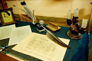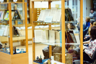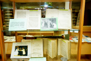 Разместилась выставка в специальных выставочных шкафах подаренных библиотеке ее