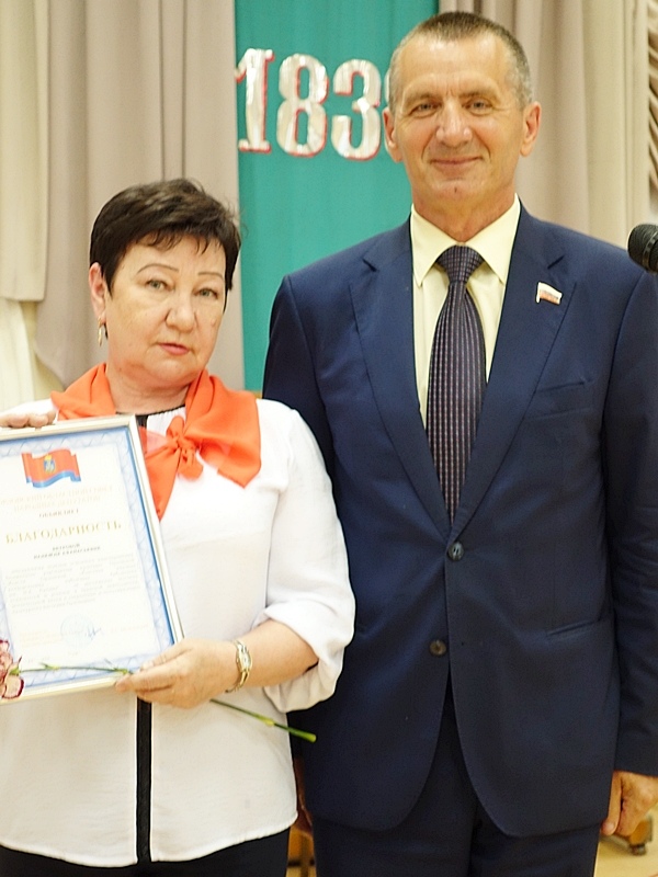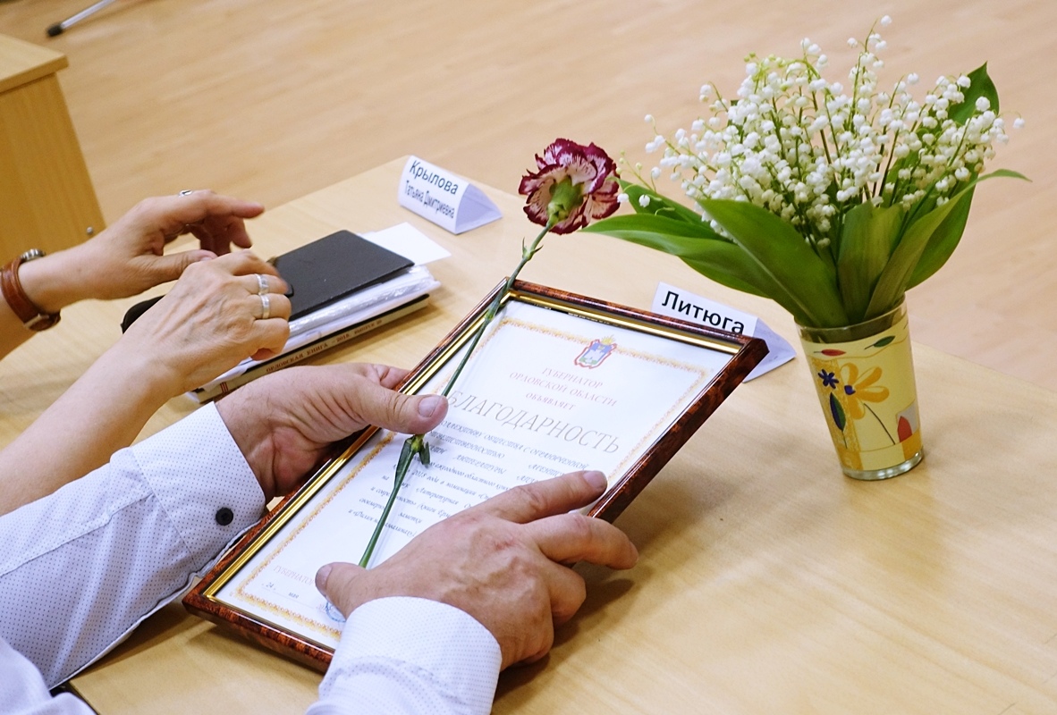По инициативе областного Совета народных депутатов за многолетнюю и плодотворную творческую деятельность в исследовании и популяризации книжной культуры Орловского края Почетной грамотой была награждена заведующая отделом основного книгохранения БУКОО «Орловская областная научная универсальная публичная библиотека им. И. А. Бунина» Надежда Афанасьевна Ветрова. При непосредственном участии которой в библиотеке поэтапно реализуется ряд инновационных проектов, направленных на сохранение библиотечных фондов, и прежде всего книжных памятников. Это такие проекты как: восстановление фондов краеведческой периодики и перевод оригиналов наиболее ценных изданий на современные виды носителей; организация системной работы с книжными памятниками Орловской области, с целью сохранности, рационального использования и введения в научный и культурный оборот книжных памятников, находящихся на территории Орловской области; профилактика биоповреждений книг из фонда редкой книги (книжных памятников) библиотеки им. И. А. Бунина и их фазовая консервация, позволяющая сохранить для будущих поколений орловцев наиболее ценную часть фонда библиотеки.