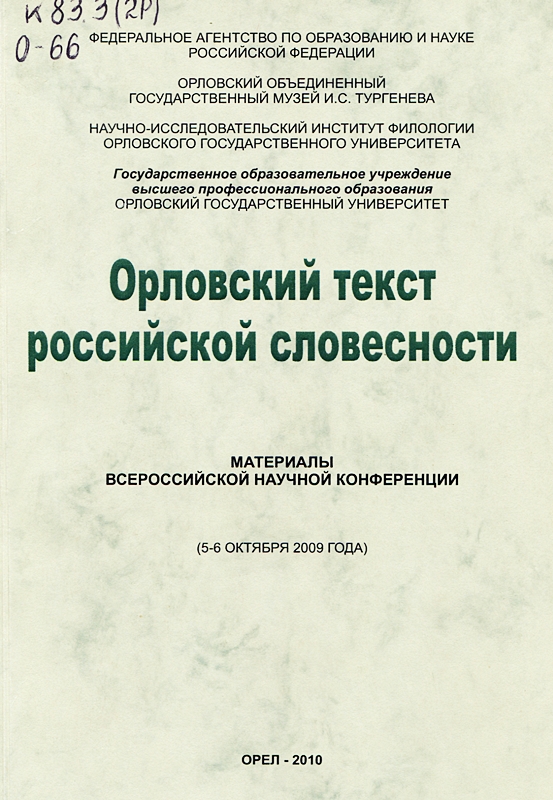 Премия в части научного издания была присуждена коллективной монографии Орловского государственного университета имени И. С. Тургенева «Текст: грани и границы. "Записки охотника" И. С. Тургенева» (Орел : изд-во ОГУ, 2017). Это – коллективная монография, подготовлена к 200-летию со дня рождения Ивана Сергеевича Тургенева и посвященная многоаспектному анализу его знаменитого цикла «Записки охотника». В монографии использованы иллюстрации к «Запискам охотника», хранящиеся в коллекции Орловского государственного литературного музея И. С. Тургенева. Книга пользуется заслуженным вниманием читателей Орловской областной научной универсальной публичной библиотеки им. И. А. Бунина. Научно-справочный аппарат соответствует типу издания.