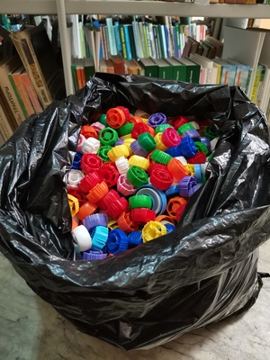 более двух месяцев и за это время уже собрано около 12 кг пластиковых крышек!